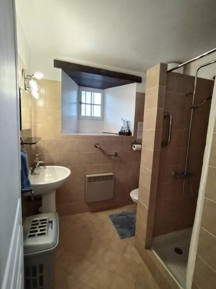 - 1 chambre : 1 lit 140*190 + salle de douche + wc.